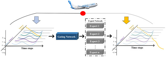 The Gating Network is the core component for realizing dynamic multi-model fusion. Its function is to assign “scene adaptation weights” to the pre-trained models, enabling the prediction process to dynamically select the optimal model combination according to the flight phase [27].