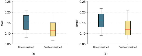 Optimization effect of fuel physical constraints on prediction errors (a) MAE; (b) RMSE.