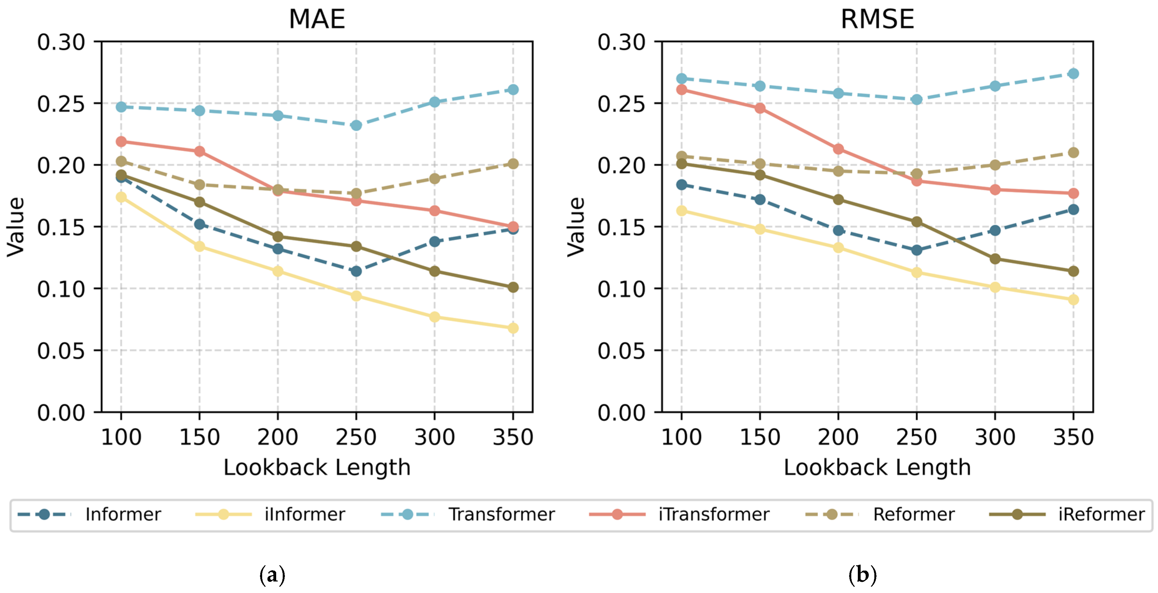 - Liu, Y.; Hu, T.; Zhang, H.; Wu, H.; Wang, S.; Ma, L.; Long, M. iTransformer: Inverted Transformers Are Effective for Time Series Forecasting. arXiv 2023, arXiv:2310.06625. [Google Scholar]