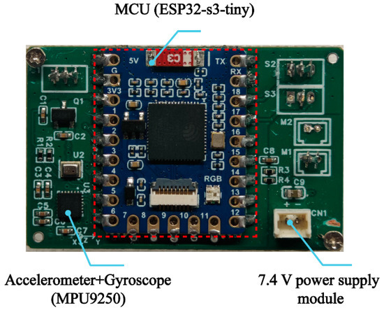 To guarantee enough steering torque, two 150 mm ducted fans are connected in parallel to form a thrust generation group. Also, since the forward and reverse rotation speeds of ducted fans are different under the same voltage, two thrust generation groups aligned in opposite direction are needed in total. For each ducted fan, two 25.9 V batteries and one voltage controller are needed. The 25.9 V battery’s capacity is 6000 mAh and its maximum current is 189 A. With a single operation time of 2–3 min, it can be repeatedly charged and used, meeting the requirements of small size and light weight.