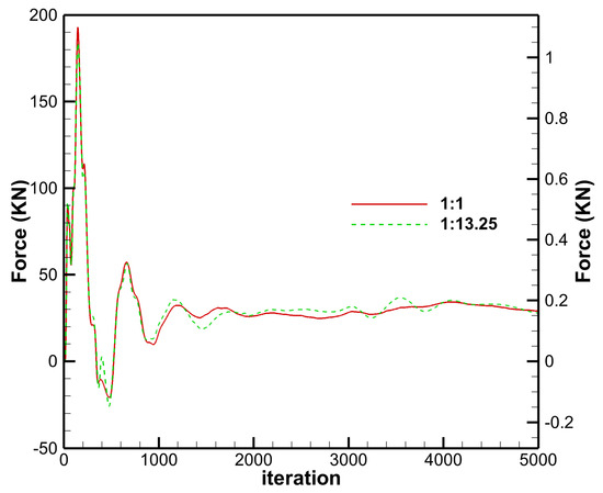 For the full-configuration model, convergence histories for key parameters at both scaling ratios are presented in Figure 15, Figure 16 and Figure 17, including: