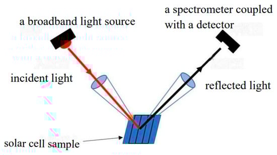 In recent years, spectral detection technology has emerged as a powerful and versatile tool in various applications, including the identification and characterization of space targets. This technology operates on the principle that different materials interact with electromagnetic radiation in unique ways, absorbing, reflecting, or emitting light at specific wavelengths. By capturing and analyzing the spectrum of light reflected or emitted from a target, it is possible to obtain wavelength-resolved information that acts as a “spectral fingerprint” [6,7]. The physical basis for using spectral detection to identify laser-damaged solar cells lies in the material changes that occur upon irradiation. Laser energy absorption leads to a significant temperature rise. This thermal damage can alter the optical properties of the various layers constituting a modern solar cell. Therefore, laser-induced damage is expected to produce detectable shifts in the cell’s spectral signature, providing a foundation for remote damage assessment.