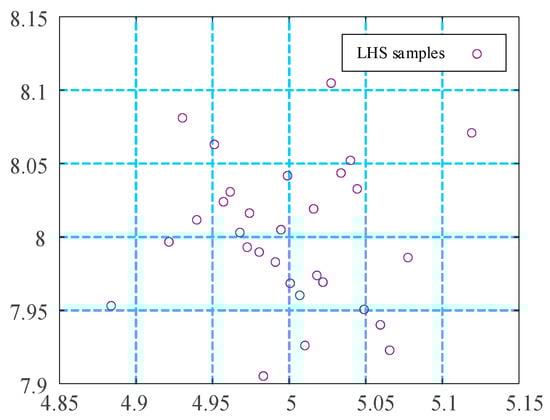 In numerous instances, the variance in estimation caused by random sampling can be excessively large. Latin hypercube sampling (LHS), introduced by McKay [32], is a popular method used to minimize this estimation variance. This technique involves dividing the test area into layers based on variable , ensuring that each layer maintains the same marginal probability . After this division, a sample is taken from each layer.