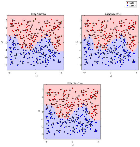 Pattern classification of sine wave-shaped boundary data sets via KNN, DANN, and PNMN.