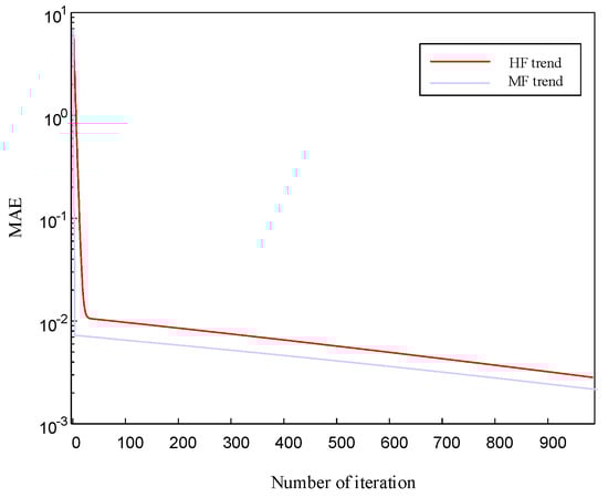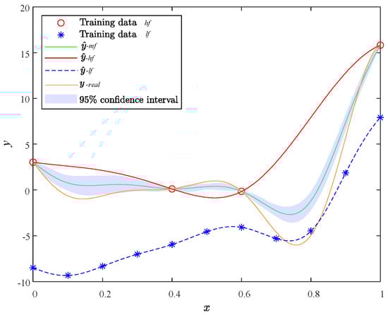 Considering the m-dimensional problem, a small amount of expensive but accurate data (high-fidelity, HF) is established as , and a large amount of cheap but low-precision data (low-fidelity, LF) is established as .