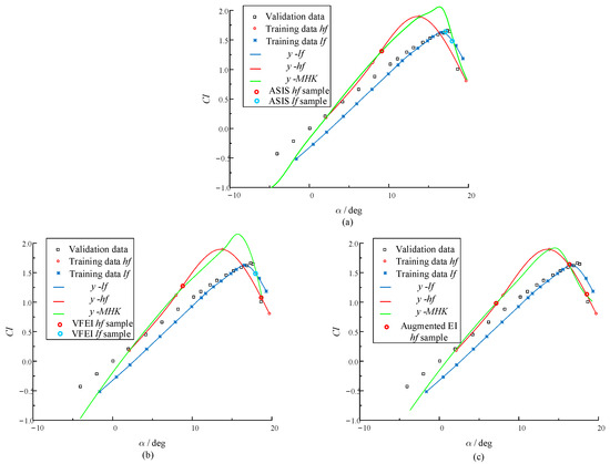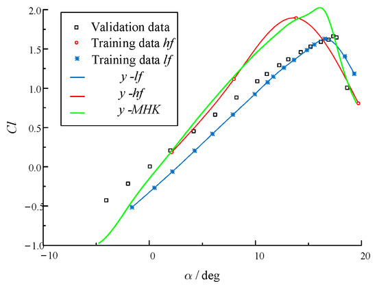 First, the simulation is performed on Xflow, 4 angles of attack (AoAs) are sampled from the Family 2 grid for HF data, and 16 AoAs are sampled from the Family 1 grid for LF data. With the initial LHS data sets, an MHK is built first as shown in Figure 17.