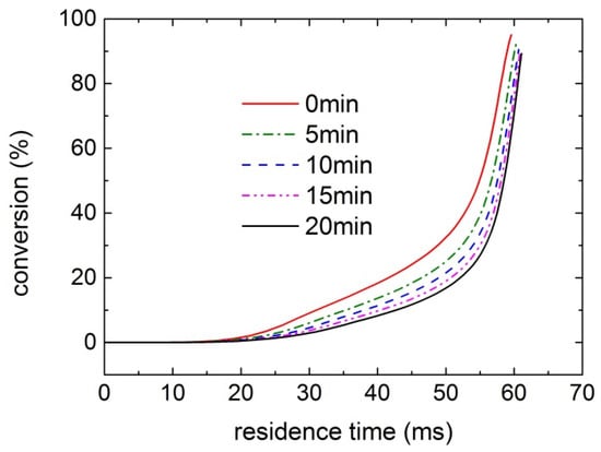 Variation in RP-3 conversion rate with the residence time.