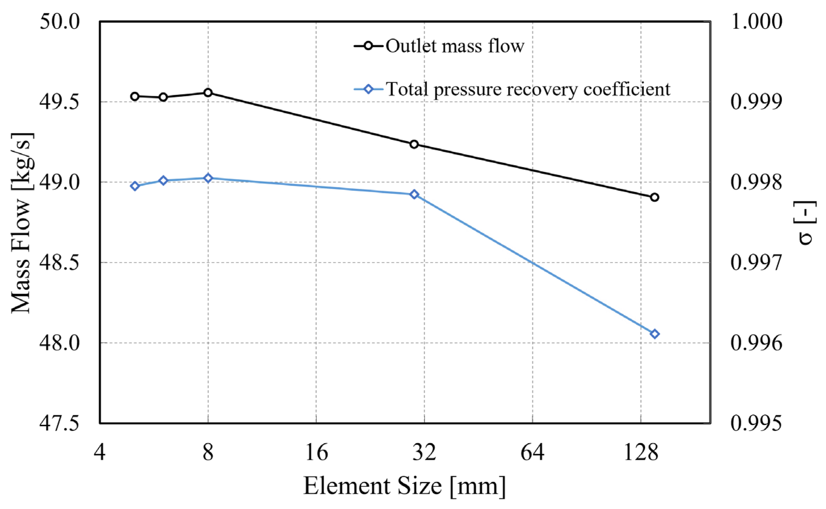 3.4. Comparison of Total Pressure Recovery Coefficient