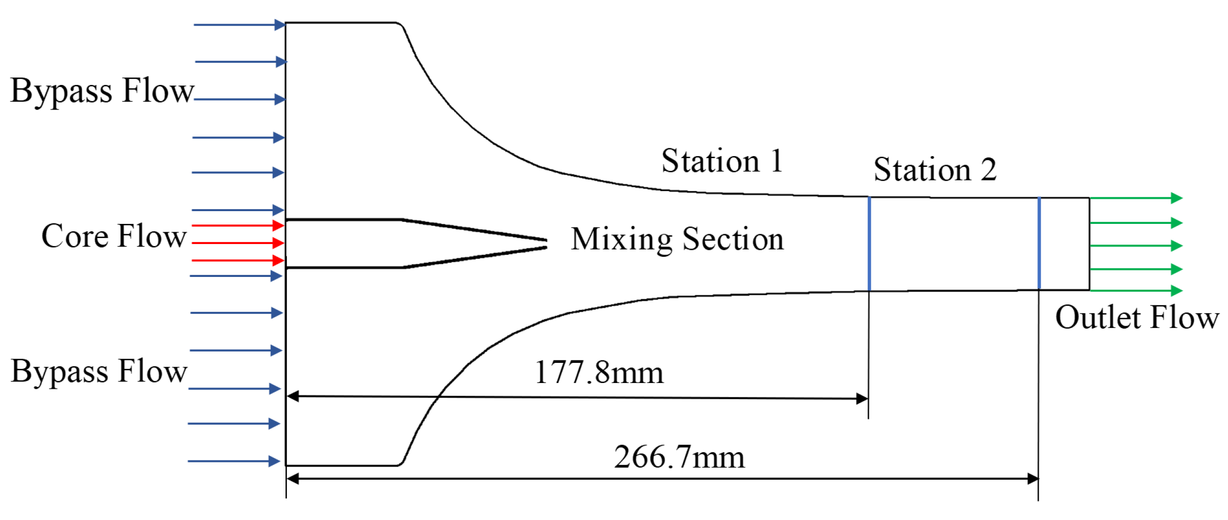 - Xiao, C.; Liu, Y.; Zhang, H. Effect of converging diverging mixing duct geometric parameters on performance of circularly lobed nozzle ejector. J. Aerosp. Power 1–9.