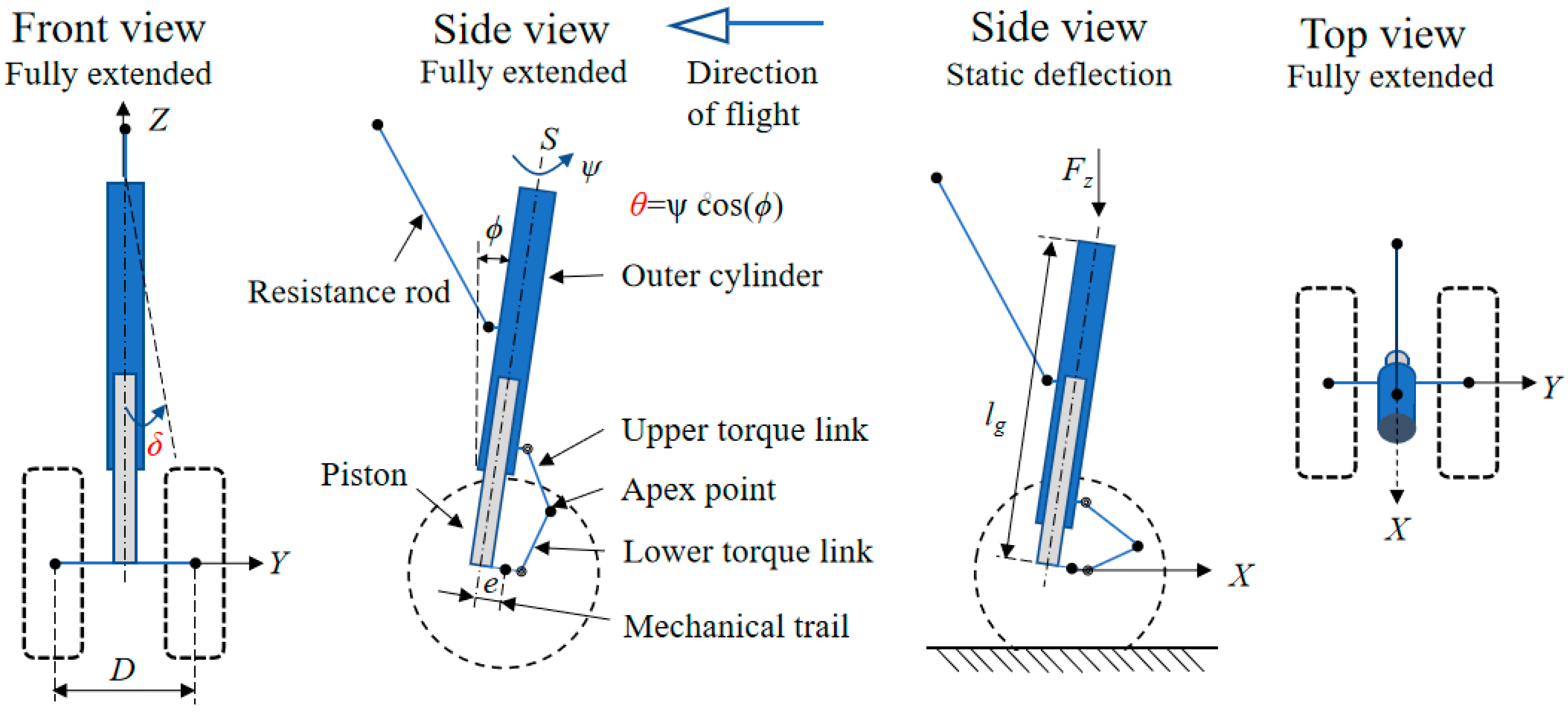 - Yager, T.J. SAE TECHNICAL Aircraft Nose Gear Shimmy Studies. 2018. Available online: https://ntrs.nasa.gov/citations/19950062072 (accessed on 9 September 2025).
