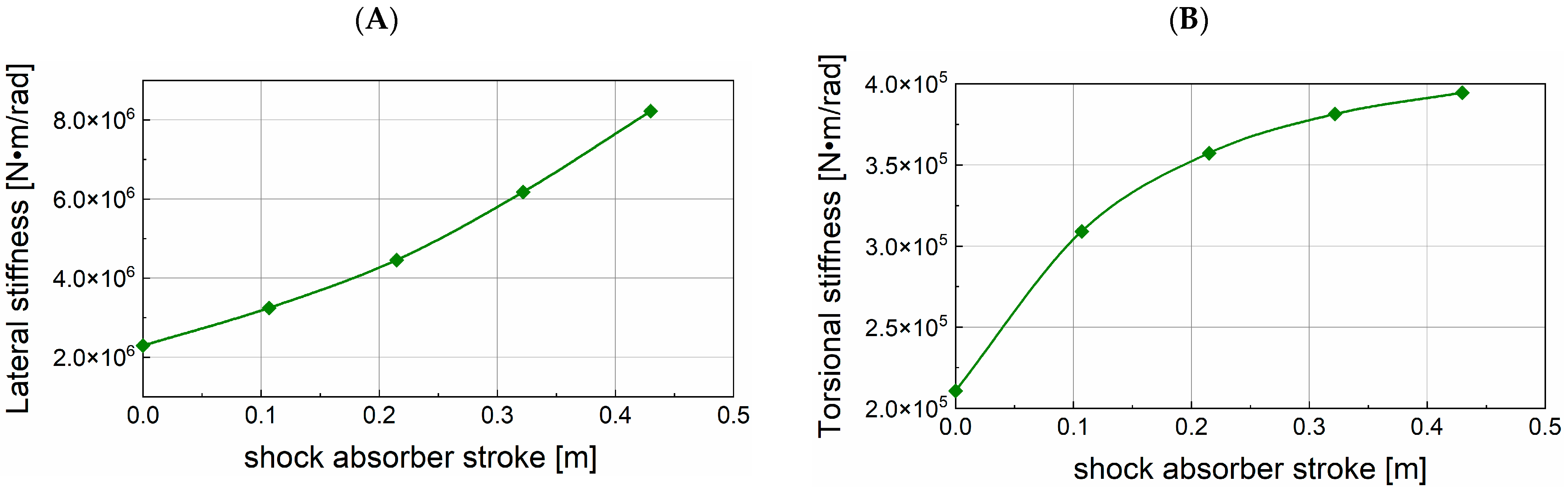 3.2. Relationship Between Shock Absorber Stroke and NLG Stiffness