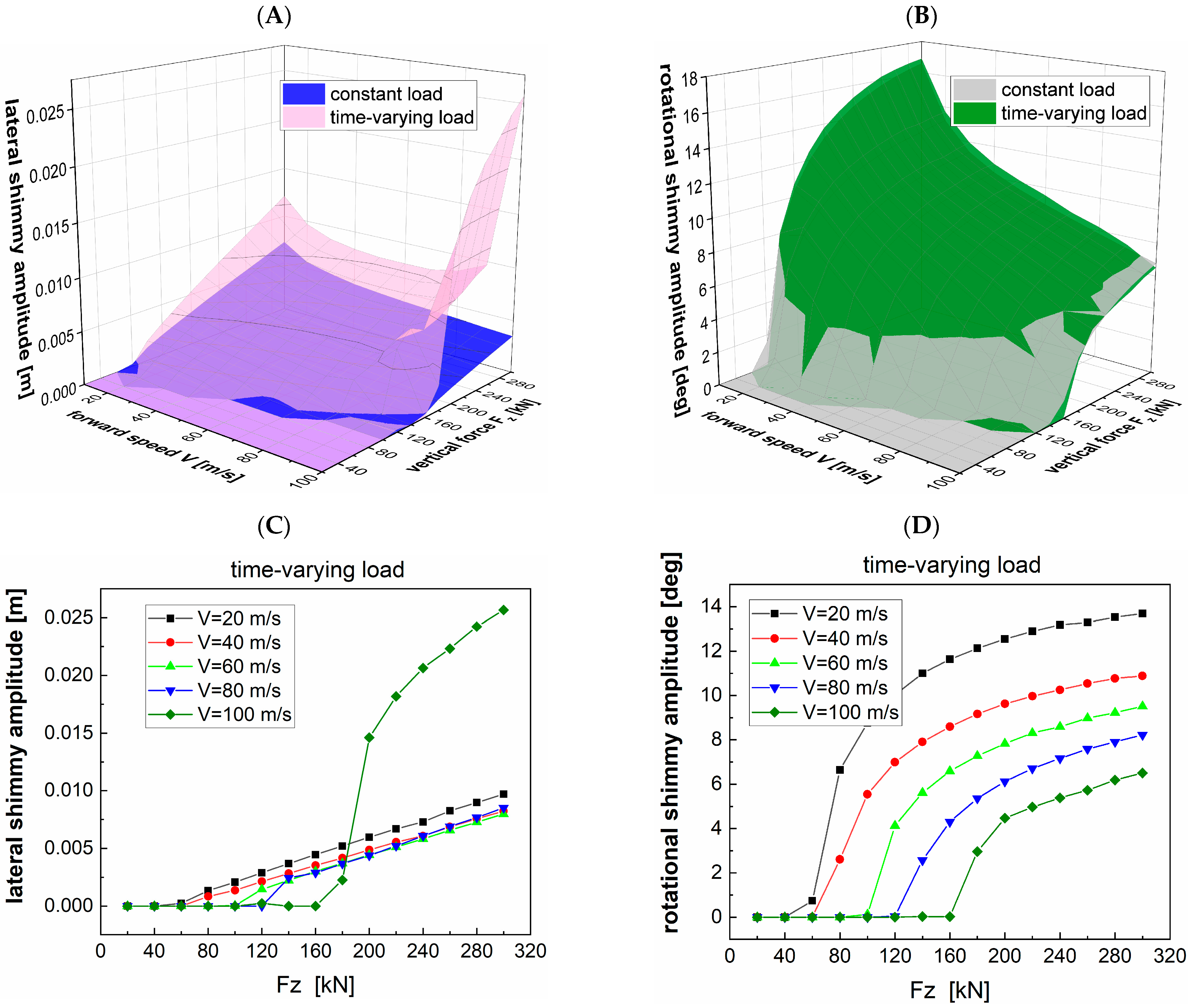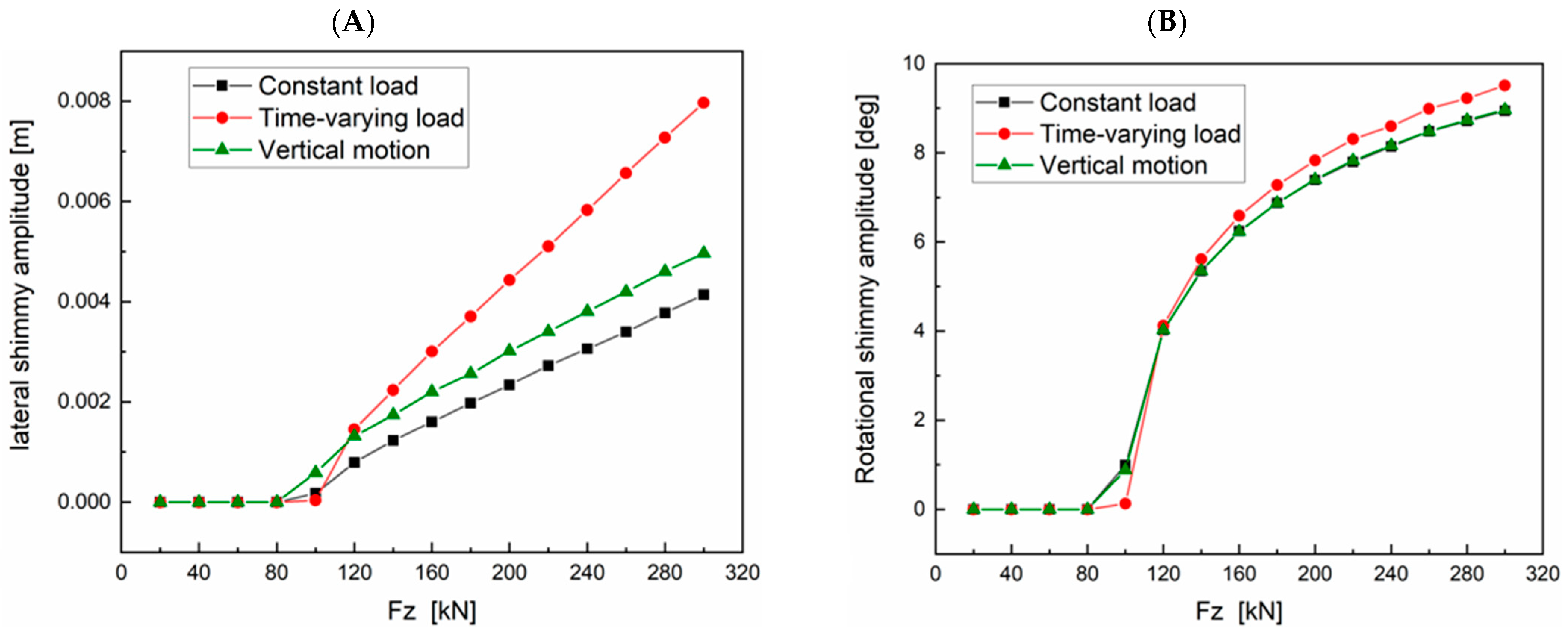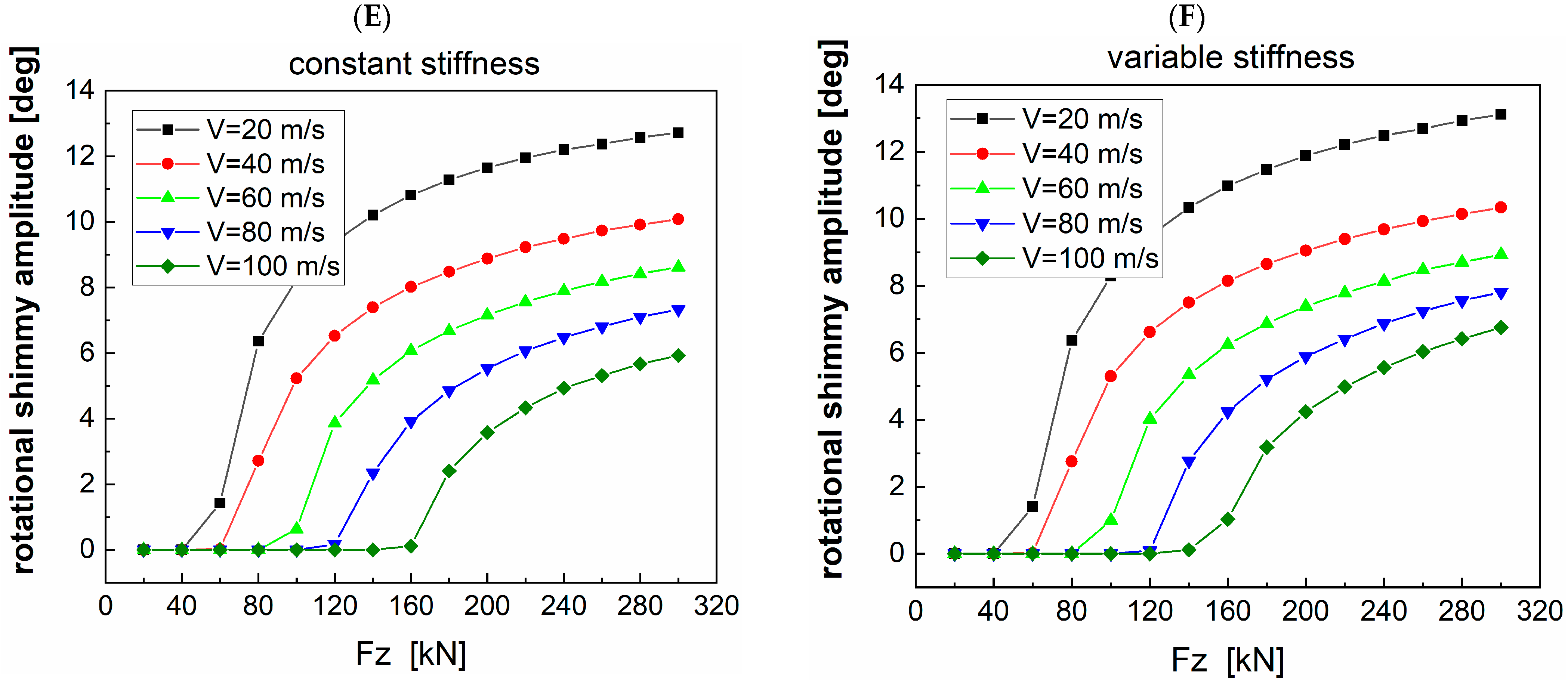 4.1. Shimmy Analysis Considering the Change in System Stiffness