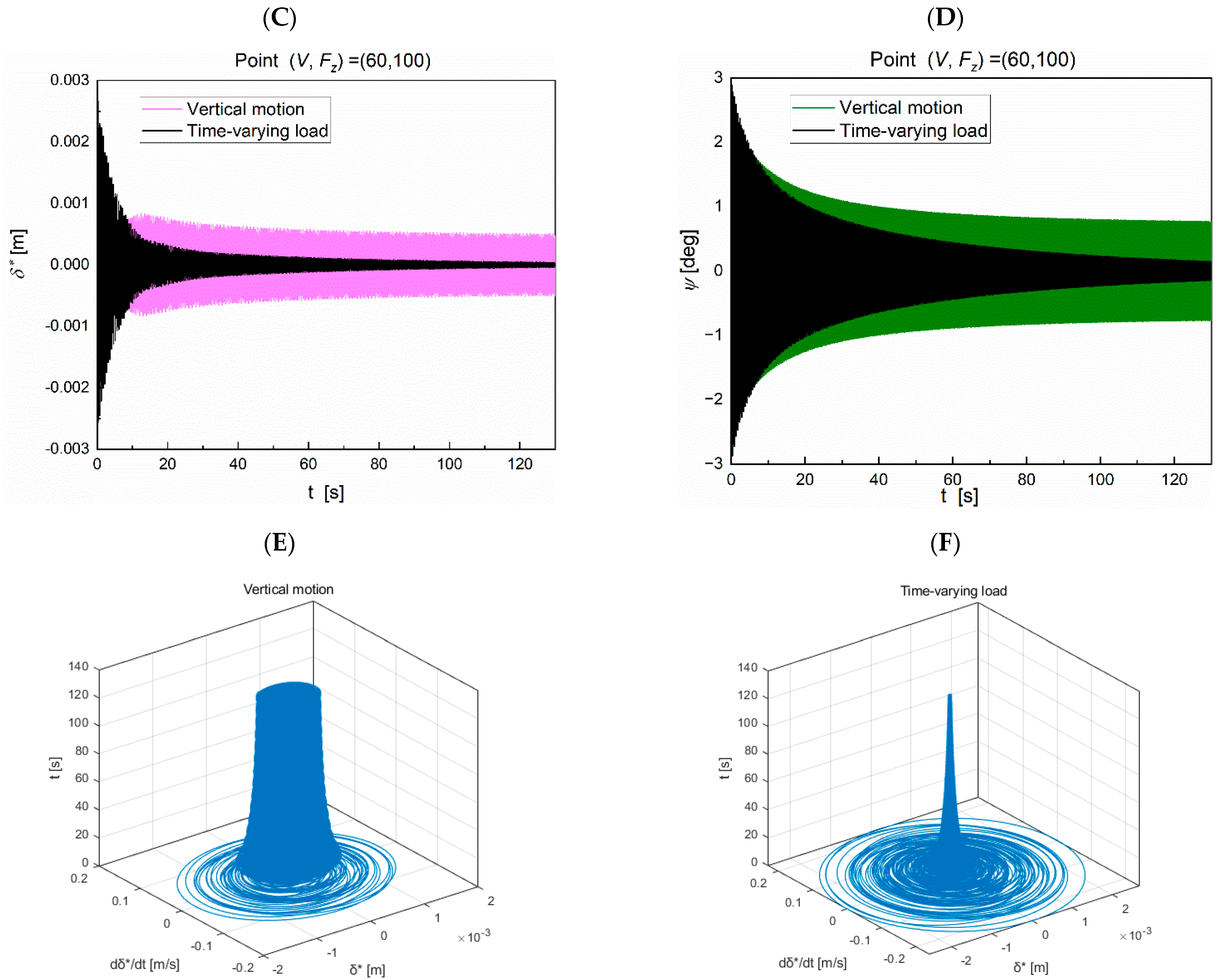 4.3. Effect of Vertical Motion on Shimmy of NLG with Variable System Stiffness