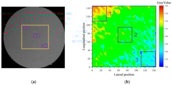(a) Local enlargement of sample; (b) Gray value map of corresponding area.