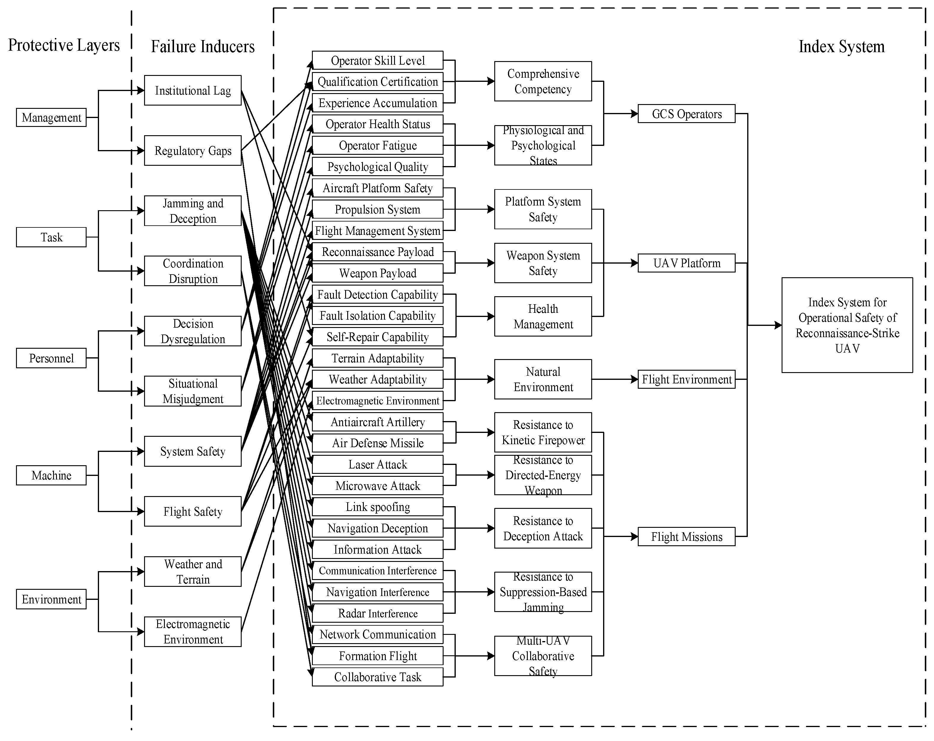 - Zhou, Y.; Liu, S.; Wang, K. An Assessment on Use and Safety of Reconnaissance-Strike UAV Based on Improved Bayesian Network. J. Air Force Eng. Univ. 2025, 26, 86–95. (In Chinese) [Google Scholar]