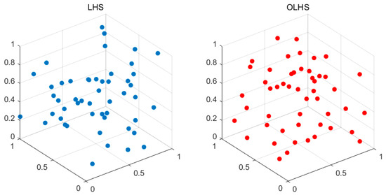 Latin Hypercube Sampling (LHS), proposed by McKay et al. in 1979 [15], is a multi-dimensional stratified sampling method. Its core procedure consists of the following steps: (1) Divide each dimension of the n-dimensional design space into mutually exclusive and equiprobable intervals; (2) randomly select one sample point within each interval of every dimension, resulting in m candidate points per dimension; (3) construct m n-dimensional vectors through random combination, ensuring each interval of every dimension is sampled exactly once. This method guarantees projection uniformity, meaning each interval of any dimension contains exactly one sample point. However, the random pairing of dimensions can result in a poor spatial distribution of the samples across the entire n-dimensional space.