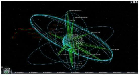 Using MATLAB Aerospace Toolbox, a high-fidelity simulation scenario was constructed based on the low-Earth orbit satellite constellation parameters provided in Table 3. These parameters include orbital altitude, inclination, phase factor, and constellation geometry, among other critical variables. By accurately importing these parameters into the simulation model, a constellation model was generated that closely mirrored real-world operational conditions.