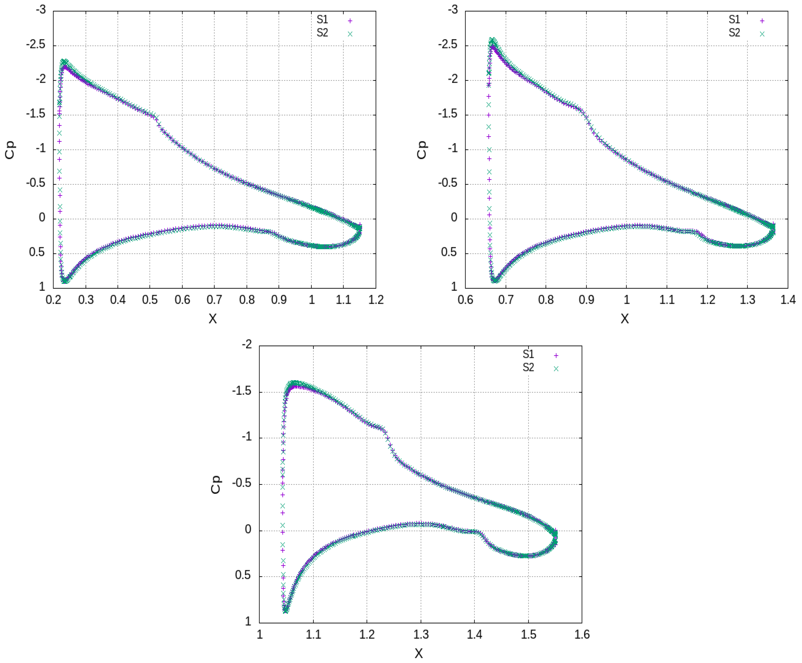 - The meshing strategy, as tabulated in Table 5, gives confidence in the results which are tabulated in Table 6. All block-structured meshes (S0, S1, S2) produce high lift-to-drag ratio of about 18 to 19. S0 produces double skin friction drag vs. S1, S2 due to its fully turbulent character. S5, which is an unstructured voxel-type mesh, also identifies the transition since it produces low-level skin friction drag and a slightly higher lift than S1, S2. The voxel meshes being used for the inflow turbulence cases (S3, S4) predict both the lift reduction in comparison to minimal inflow turbulence case and the high increase in drag.