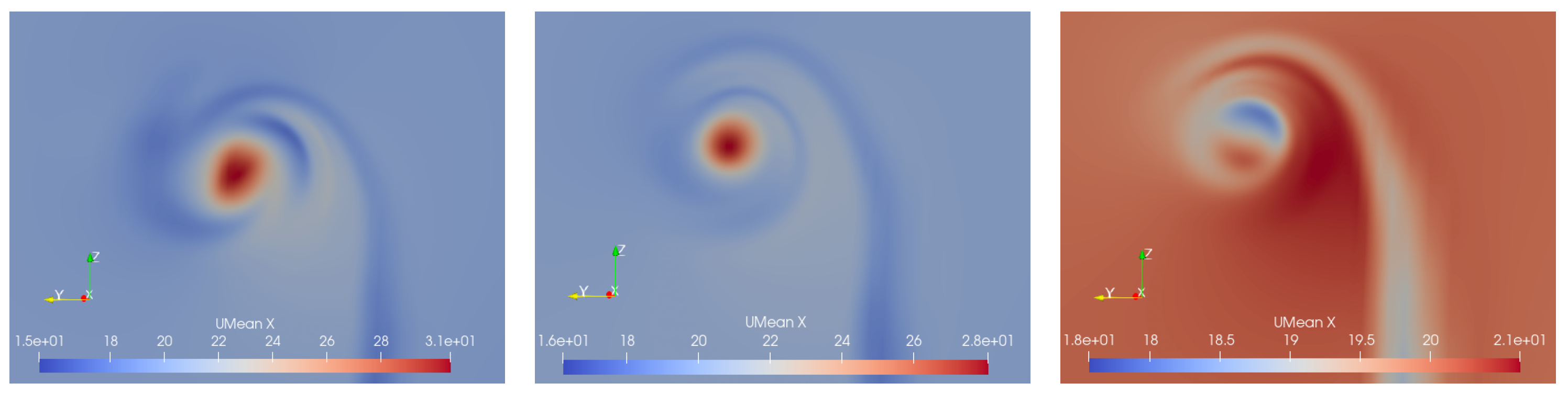 - O’Regan, M.S.; Griffin, P.C.; Young, T.M. A vorticity confinement model applied to URANS and LES simulations of a wing-tip vortex in the near-field. Int. J. Heat Fluid Flow 2016, 61, 355–365. [Google Scholar] [CrossRef]