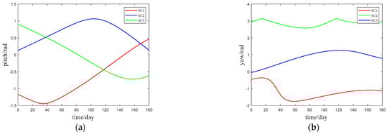 Initial relative attitude angle. (a) Time-varying initial pitch angle; (b) Time-varying initial yaw angle.