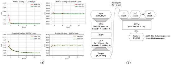 Normalization was performed to integrate various parameters with different ranges and units for learning. This study experimented with both Standard Scaling and MinMax Scaling methods to compare performance. Standard Scaling transforms each feature to have a mean of 0 and a standard deviation of 1, effective when features follow a normal distribution and less sensitive to outliers. MinMax Scaling linearly transforms all values to between 0 and 1, not forcing data distribution, but it is very sensitive to outliers. If scaling were performed for each flight individually, unique maneuver characteristics such as altitude or speed for each flight would be lost. Therefore, global scaling was performed for both scaling methods to extract generalized features considering maneuvers of all flights. That is, global mean, std, or global min/max values were calculated by integrating all data to perform scaling for each flight.