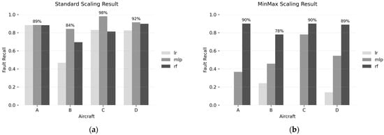 These results show that there is a meaningful correlation between maneuver data and faults. All aircraft show quite high performance, and slight differences appear to reflect some external factors, such as differences in data acquisition rates by aircraft and aircraft-specific characteristics. Furthermore, the experimental results show that Standard Scaling is effective for preprocessing data to use maneuver data regardless of data outliers, and that there are nonlinear relationships between maneuvers and faults. A limitation of this study is that specific characteristics of maneuvers with high fault-causing probability cannot be disclosed due to military data security reasons. However, this study is significant in proving that a meaningful correlation exists between maneuver data and faults.