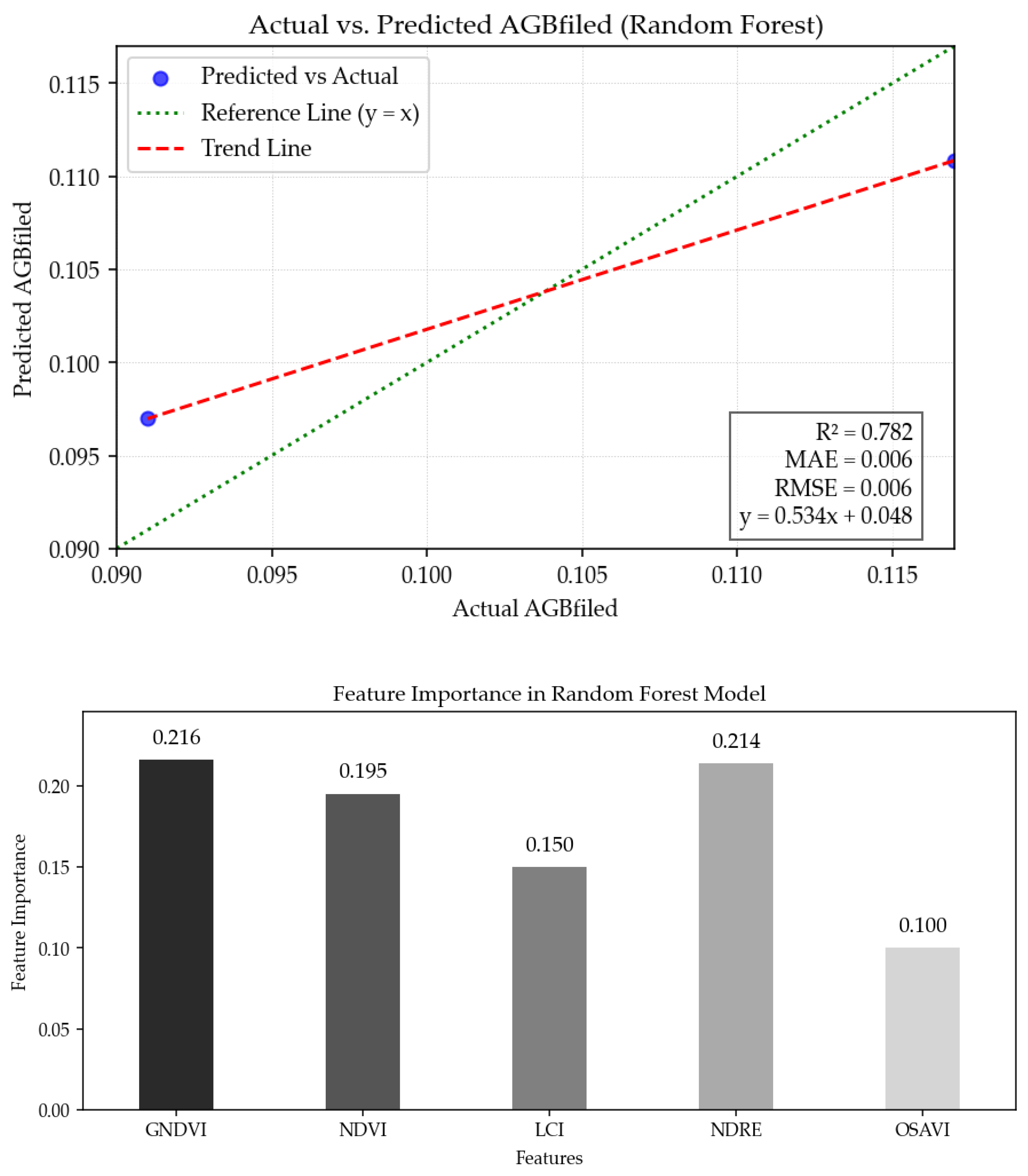 | Trend line Equation | The regression fits between actual and predicted AGB field values |