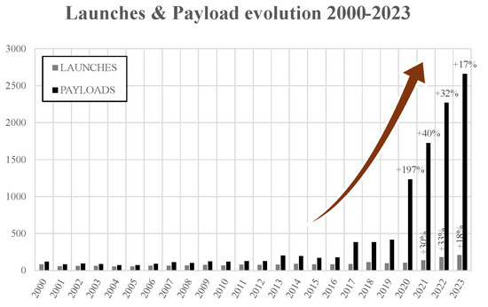 Evolution of Space Activities: Launches & Payload Deployments (2000–2023) [5].
