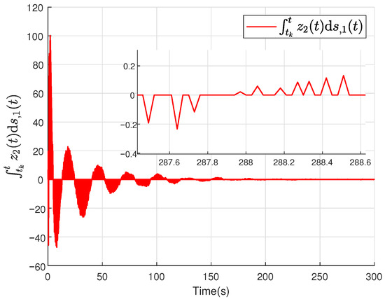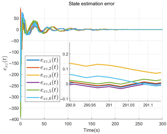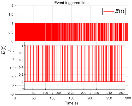 where is the estimation of with ; L is the ESCDO gain matrix satisfying with , and as given parameters; is the variable based on the inter-sample prediction term ; , , are adjustable parameters without direct physical meaning. Their purpose is to ensure convergence of the observer’s estimation error in the designed ESCDO. is the event-triggered mechanism condition designed as