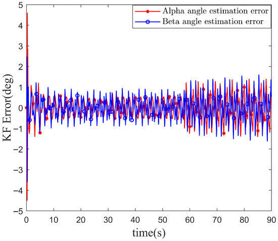 Figure 16 illustrates the actual swing angle and its estimation performance. As shown, after incorporating coupling compensation, the system maintains the swing angle within a small range during both static anti-swing operations and dynamic flight, significantly enhancing the stability and safety of outdoor suspended-payload UAV operations. This enables the UAV to accurately track the desired trajectory while effectively suppressing payload oscillation. The IMU-based estimation method with Kalman filtering, as proposed in this study, also demonstrates excellent performance in simulation. As further supported by Figure 17, although the initial error is around 5°, it rapidly converges and remains within 2° thereafter. Although IMU measurements are susceptible to motion acceleration during flight, the resulting errors remain acceptable for most practical applications. The sliding mode control algorithm used in this study—known for its strong robustness and low sensitivity to disturbances—can also compensate for sensor inaccuracies. Therefore, the external sensor-free autonomous state estimation scheme proposed in this paper effectively addresses the challenge of detecting payload states in outdoor suspended-payload UAV flights. However, in scenarios requiring extremely precise swing angle estimation, additional sensors such as vision systems or encoders could be integrated to further improve accuracy through multi-sensor fusion. Nevertheless, the proposed method remains highly applicable in most commercial and industrial settings, demonstrating considerable practical value.