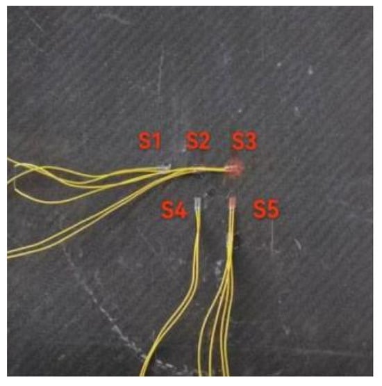 The dynamic deformation of carbon fiber laminate during impact is referred to as strain. First, the impact position is identified as the plate’s center position after modifying the clamping position through pre-experiment. For carbon fiber laminates, five measurement locations were established. Strain gauges were attached 20 mm apart. Figure 2 shows the S3 as the impact center, and S1, S2, S4, and S5 as the impact edges.