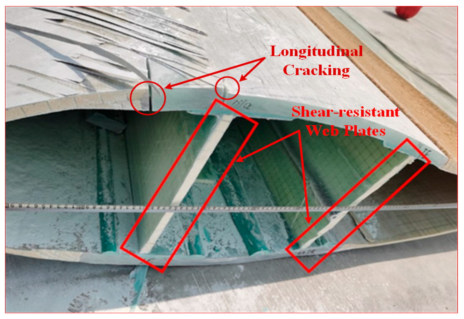 7] and longitudinal cracking of the matrix main beam under high-speed flutter conditions or extreme working conditions (implicit fracture failure can only be identified when removed for repair, as shown in