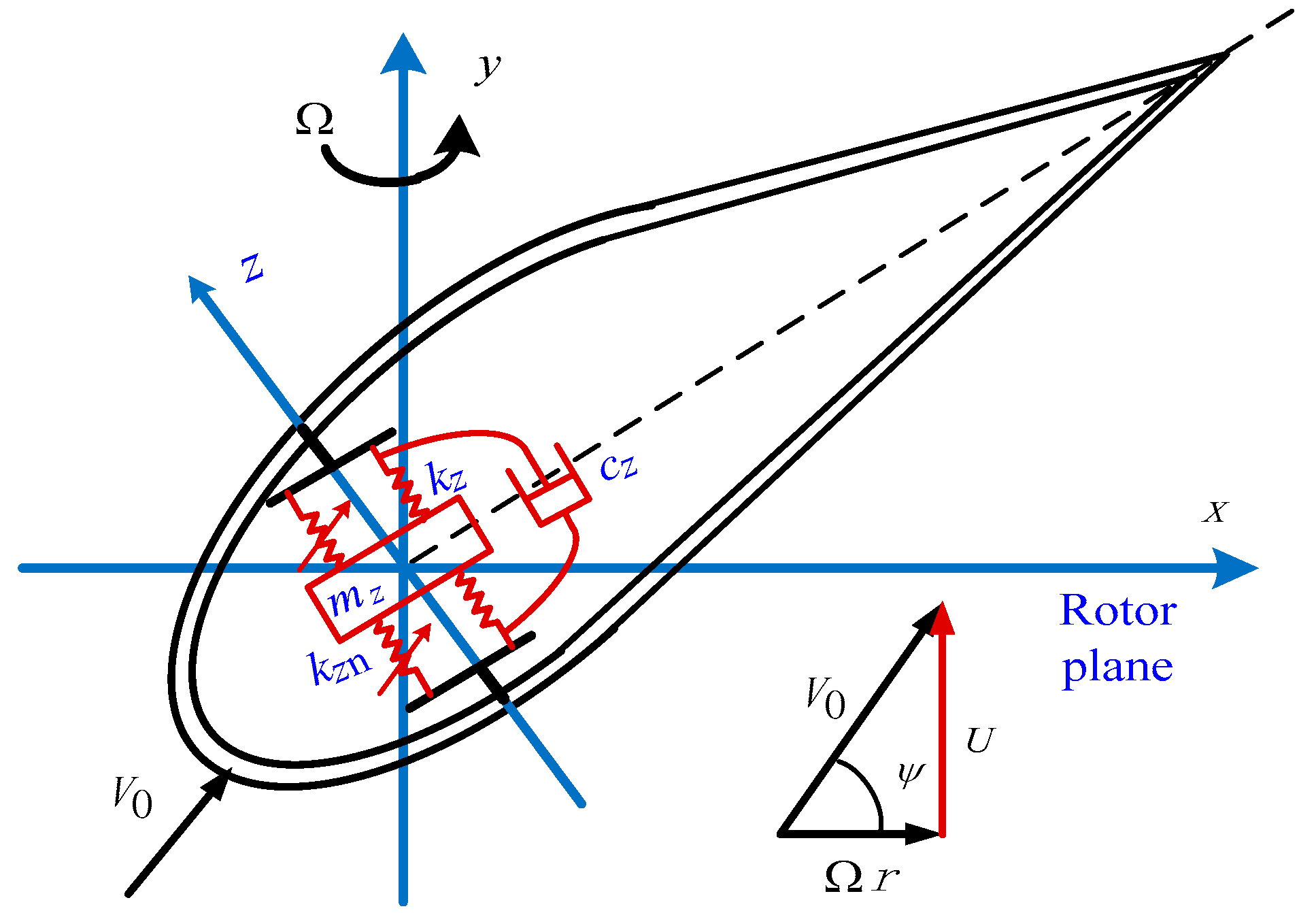 2]. So far, most existing research has focused on the stall nonlinear aeroelastic stability problem of blades (i.e., stall flutter problem in coupled vibration under the combined action of structural nonlinearity and aerodynamic nonlinearity), the linear classical flutter problem under high wind speed, and the fracture failure problem caused by vibration under various turbulence and wake effects [