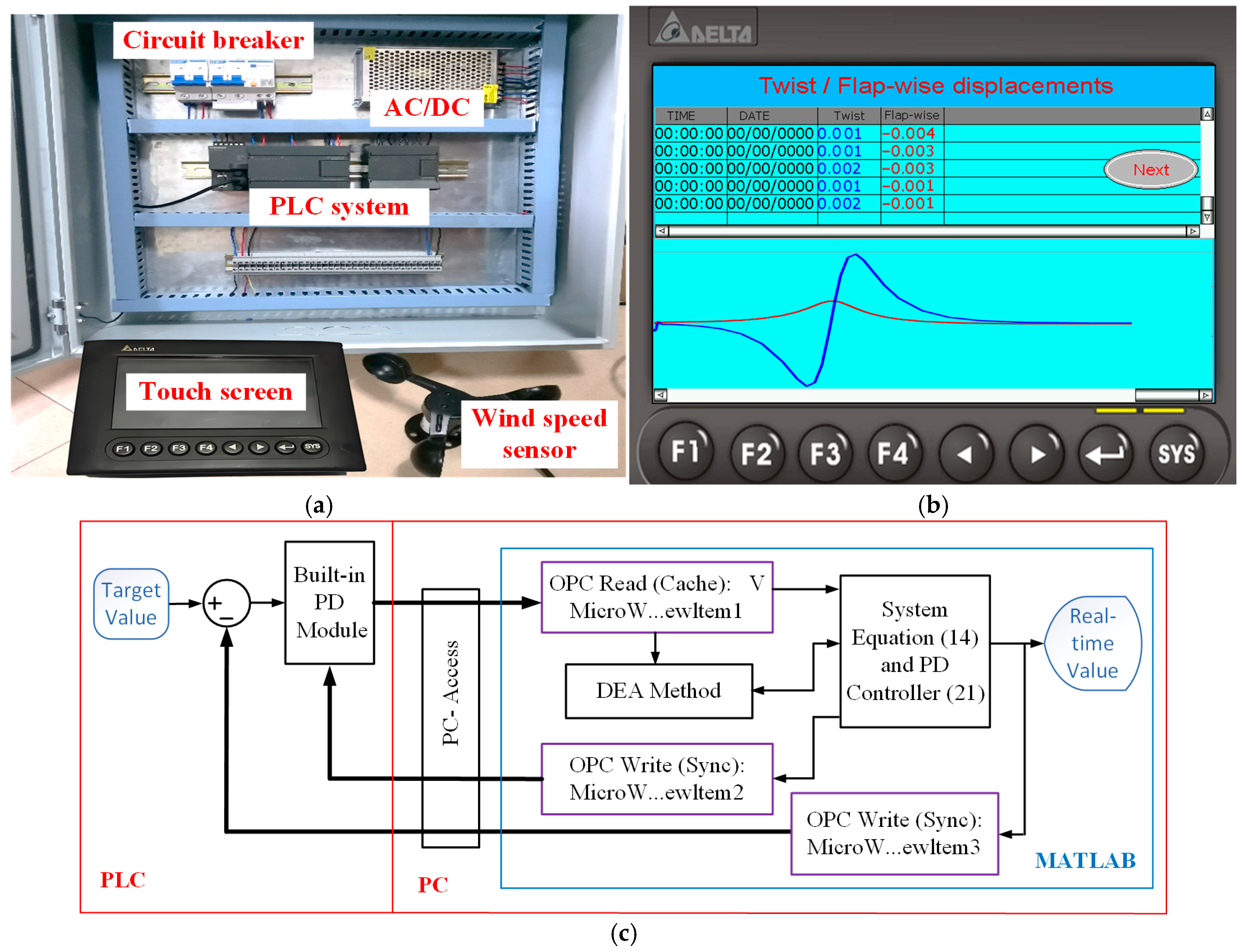14], in order to accelerate the simulation speed, the DAESSC solver in MATLAB (R2022b, MathWorks, Natick, MA, USA) was used to solve the nonlinear system equations and obtain acceleration performance during numerical solving. At the same time, because flap-wise waving is the primary mode, when the PD adjustment variable is selected as waving displacement, a sensing unit can be set at the cross-sectional position in engineering applications. A high-frequency pickup can be used to detect the “high-frequency micro-amplitude” acceleration signal, and after 1–2 integrations, the velocity and displacement signals can be obtained separately, thus using Equation (23) to achieve stability control.