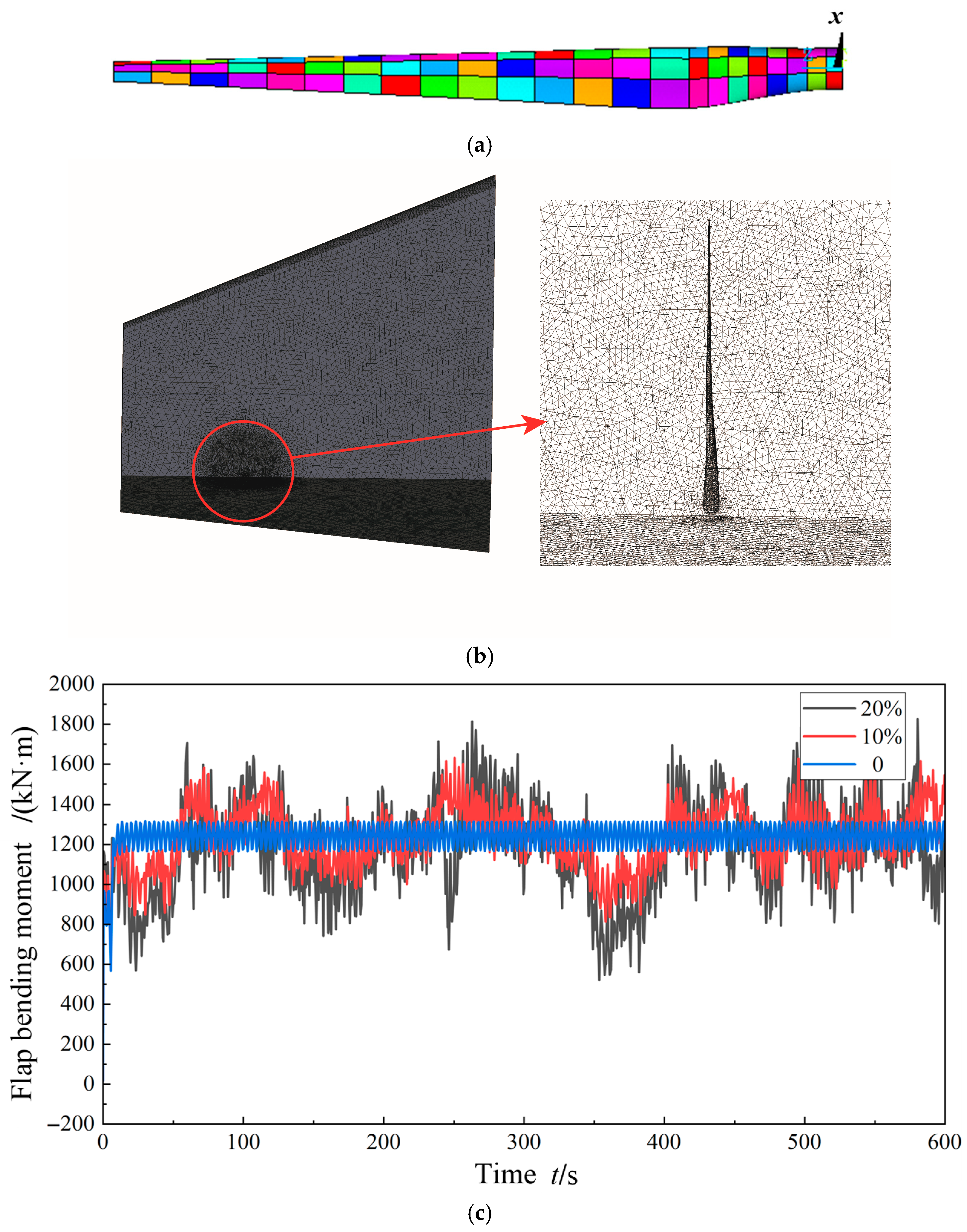 Figure 12 shows the overall structure of the blade, the blade flow field and mesh division, and the root flapping moment.