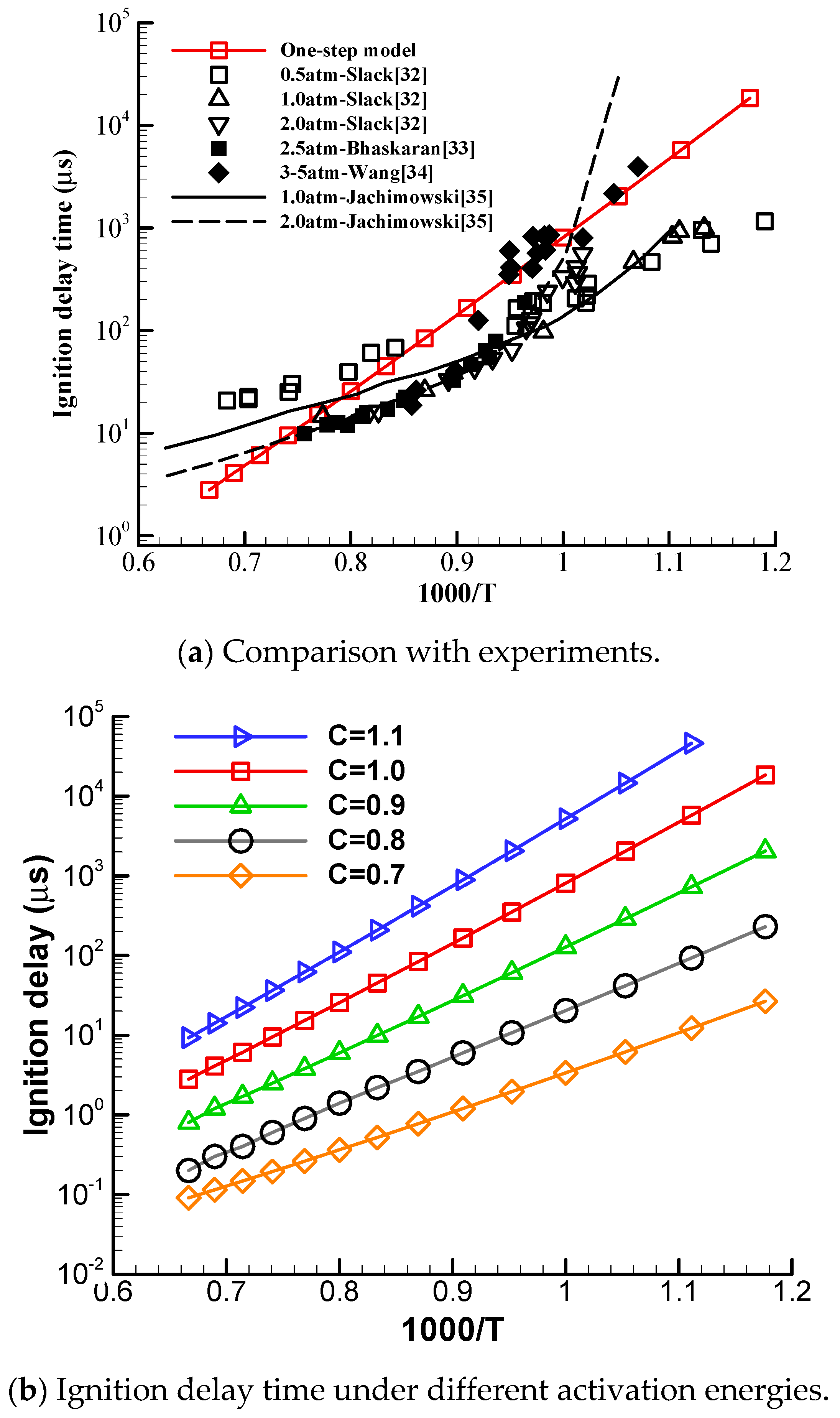 Figure 16. Ignition delay time comparison of one-step model with experiments.