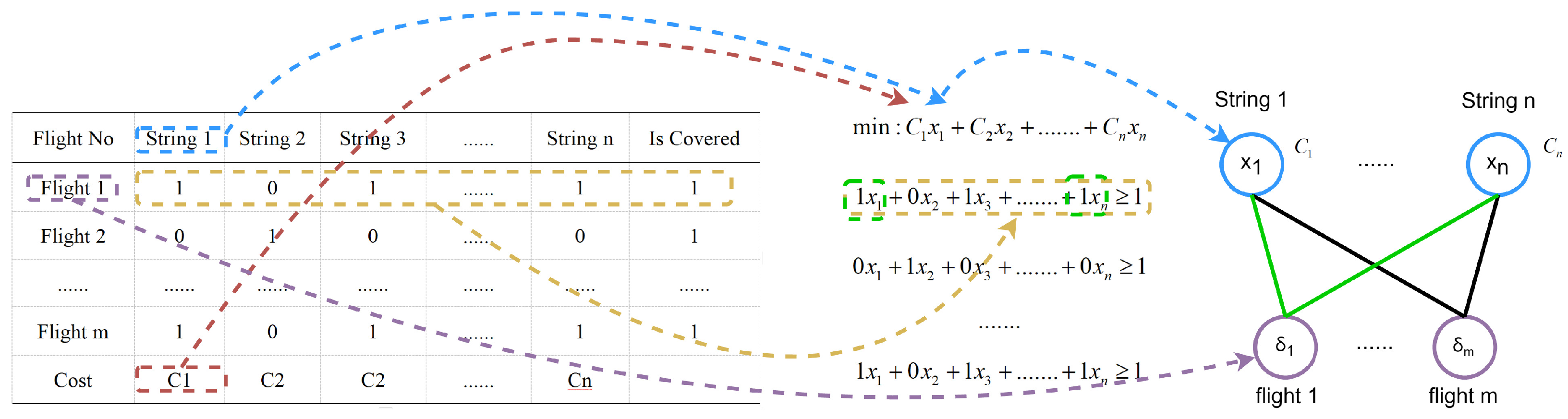 32]. For the problem addressed in this study, the data consists of a large number of solvable Set Covering Problems. Regarding the Aircraft Routing Problem, there are several challenges in collecting training data. If public datasets are used to train the model (such as CORLAT, MIPLIB, Google Production Packing, etc.), these datasets suffer from scattered data scales and are randomly generated, with no regularity in the constraint coefficients of the variables. Using these datasets to train the model results in poor fitting for the Aircraft Routing Problem, significantly reducing accuracy.