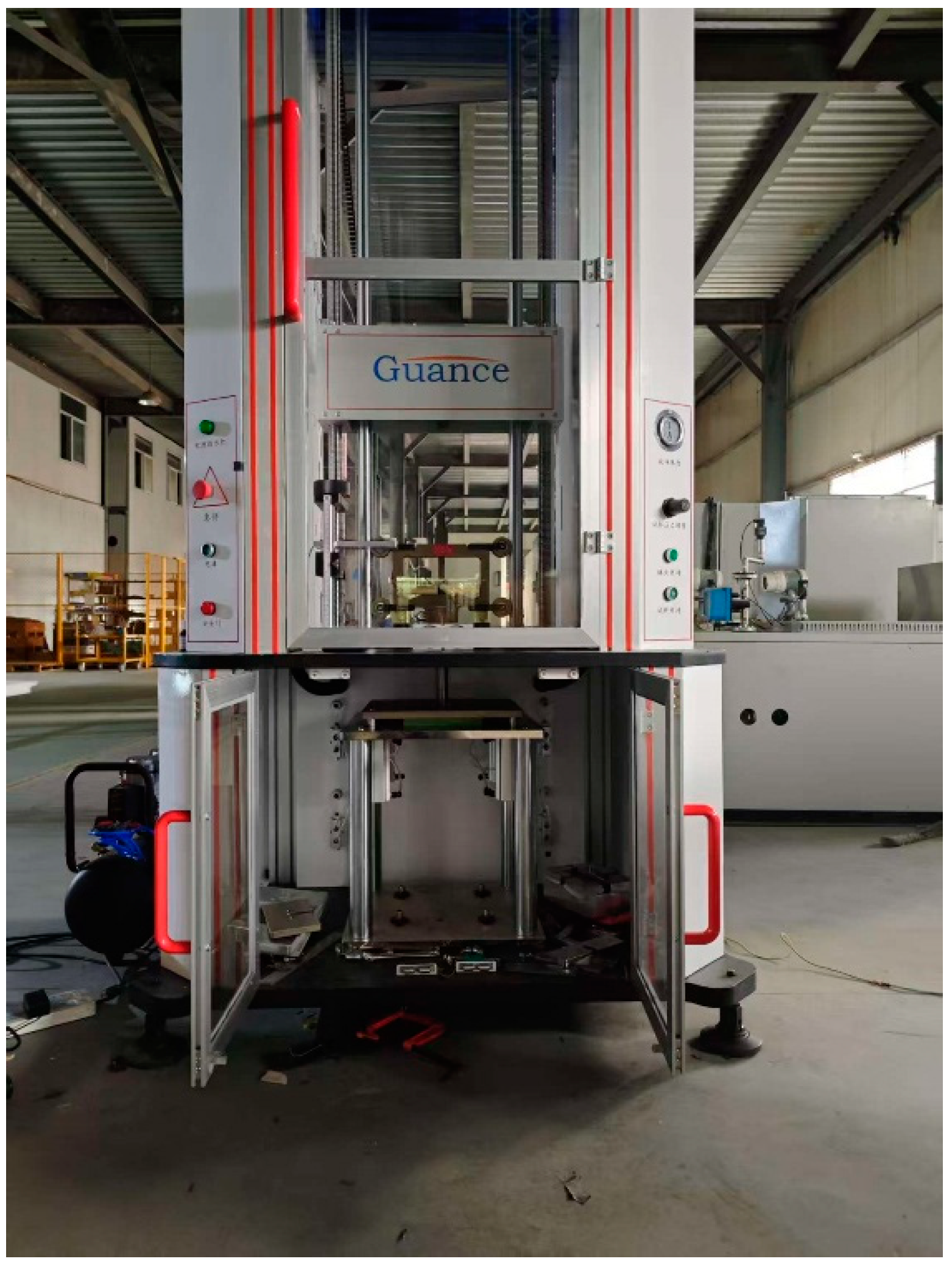 This test employs the CLC-AI type drop hammer impact testing machine produced by Beijing Guance Precision Instrument Equipment Co., Ltd. (Beijing, China). The device comprises three components: an impact loading unit, a high-velocity data acquisition system, and a data analysis system, as shown in Figure 4.