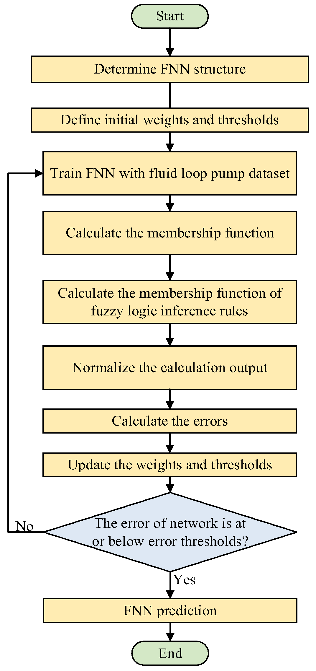 Figure 3 illustrates the BPNN structure used in this study, with the input layer comprising four neurons that represent the fluid loop pump status parameters and the output layer containing one neuron that represents the status label.