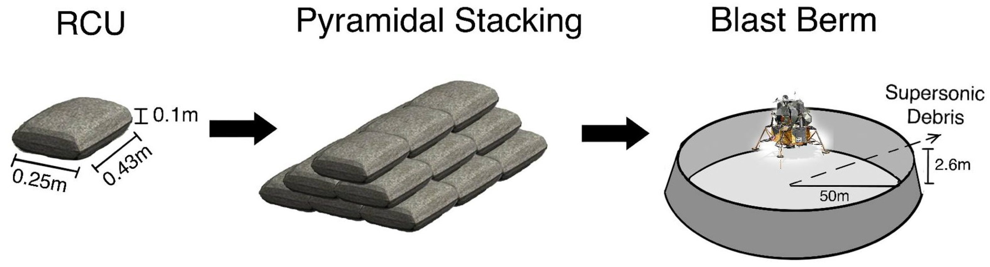 - Raj, A.T.; Qiu, J.; Vilvanathan, V.; Xu, Y.; Asphaug, E.; Thangavelautham, J. Systems Engineering of Using Sandbags for Site Preparation and Shelter Design for a Modular Lunar Base. In Earth and Space; American Society of Civil Engineers: Reston, VA, USA, 2022. [Google Scholar] [CrossRef]