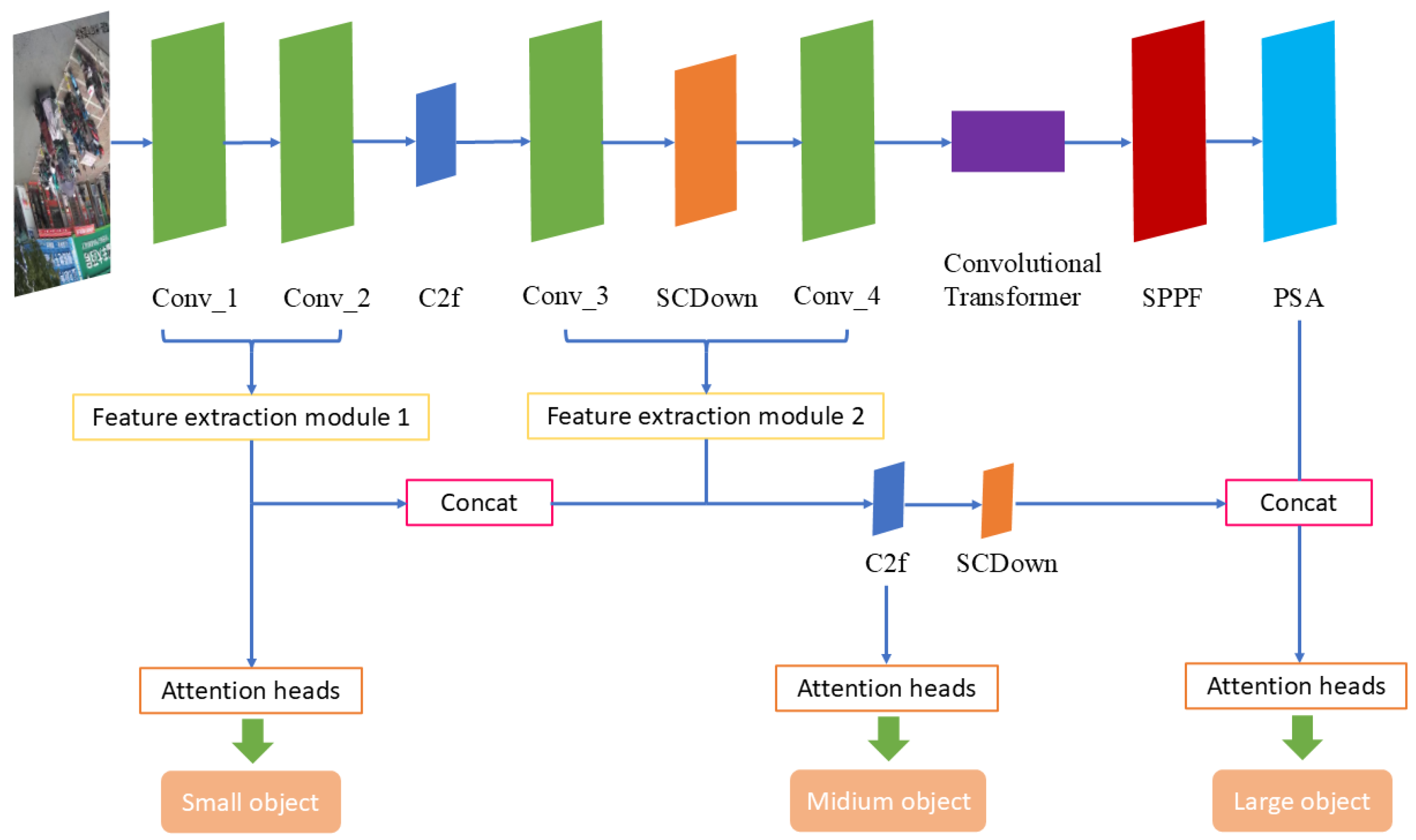 Owing to the high operational altitudes of unmanned aerial vehicles (UAVs), targets within their visual field tend to be diminutive in size, with limited visual details—circumstances that demand the detection model exhibit strong performance in identifying small objects. In practical working environments, UAV altitudes may shift dramatically due to unforeseen contingencies. Consequently, the scale of observed objects in the UAV’s field of view also varies dynamically, necessitating that the detection model possess robust capabilities for multi-scale object detection.