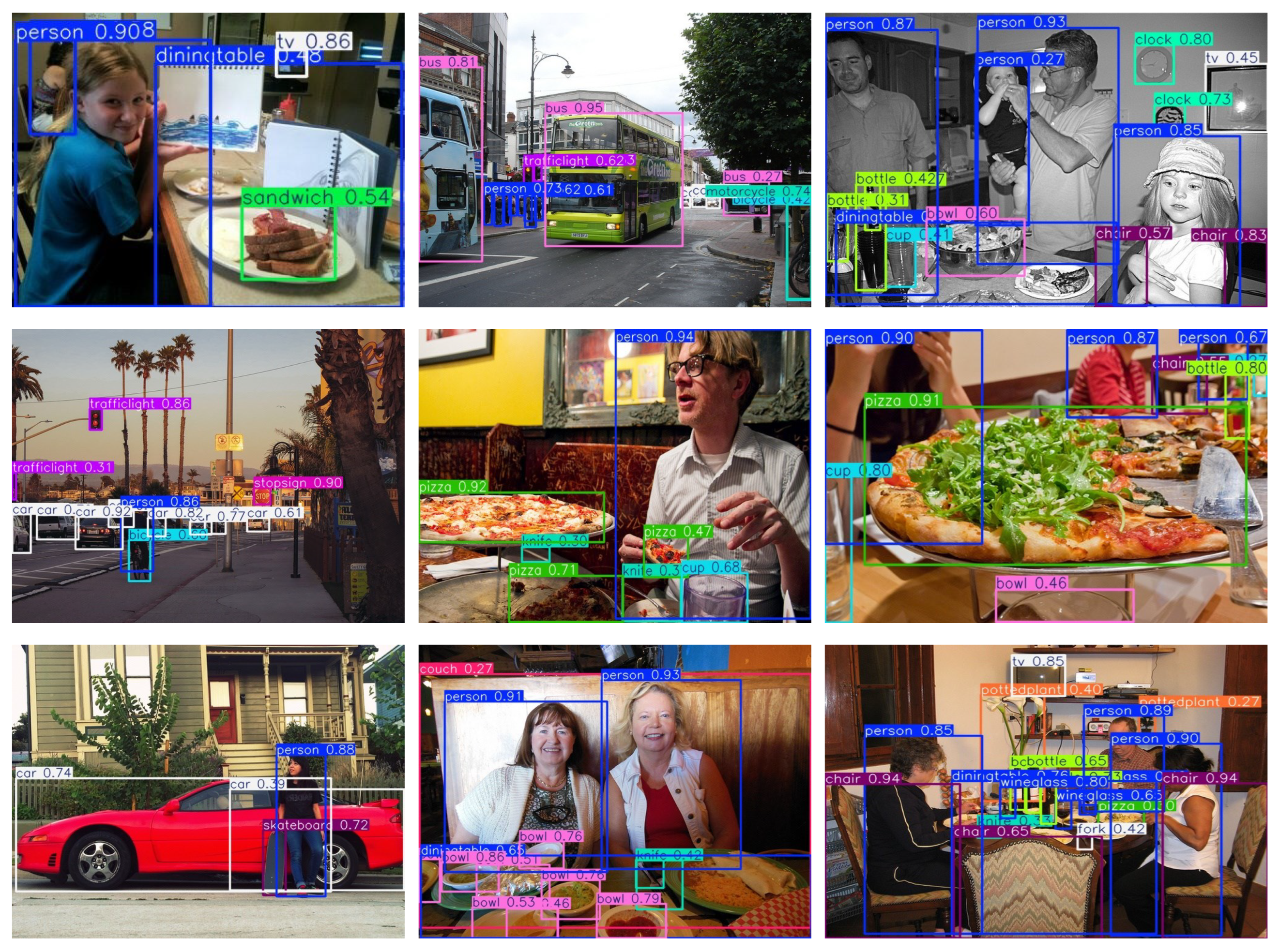 We conducted evaluations of the proposed DODT method on the public dataset Microsoft Common Objects in Context (MS COCO) to assess its generalization capability across diverse scenarios. Unlike drone image datasets, COCO represents a highly challenging public benchmark characterized by dozens of distinct object categories. Figure 10 presents visualized instances of DODT results on the COCO dataset. Visual evidence confirms DODT’s robust performance in detecting small objects across varied scenarios, underpinned by its effective small-target feature learning. The method also maintains high precision in identifying specific object classes within challenging scenes characterized by backgrounds exhibiting high similarity to the target objects. In addition, these visualizations demonstrate that our method performs consistently well across diverse scenarios, indicating its robust generalization capability.