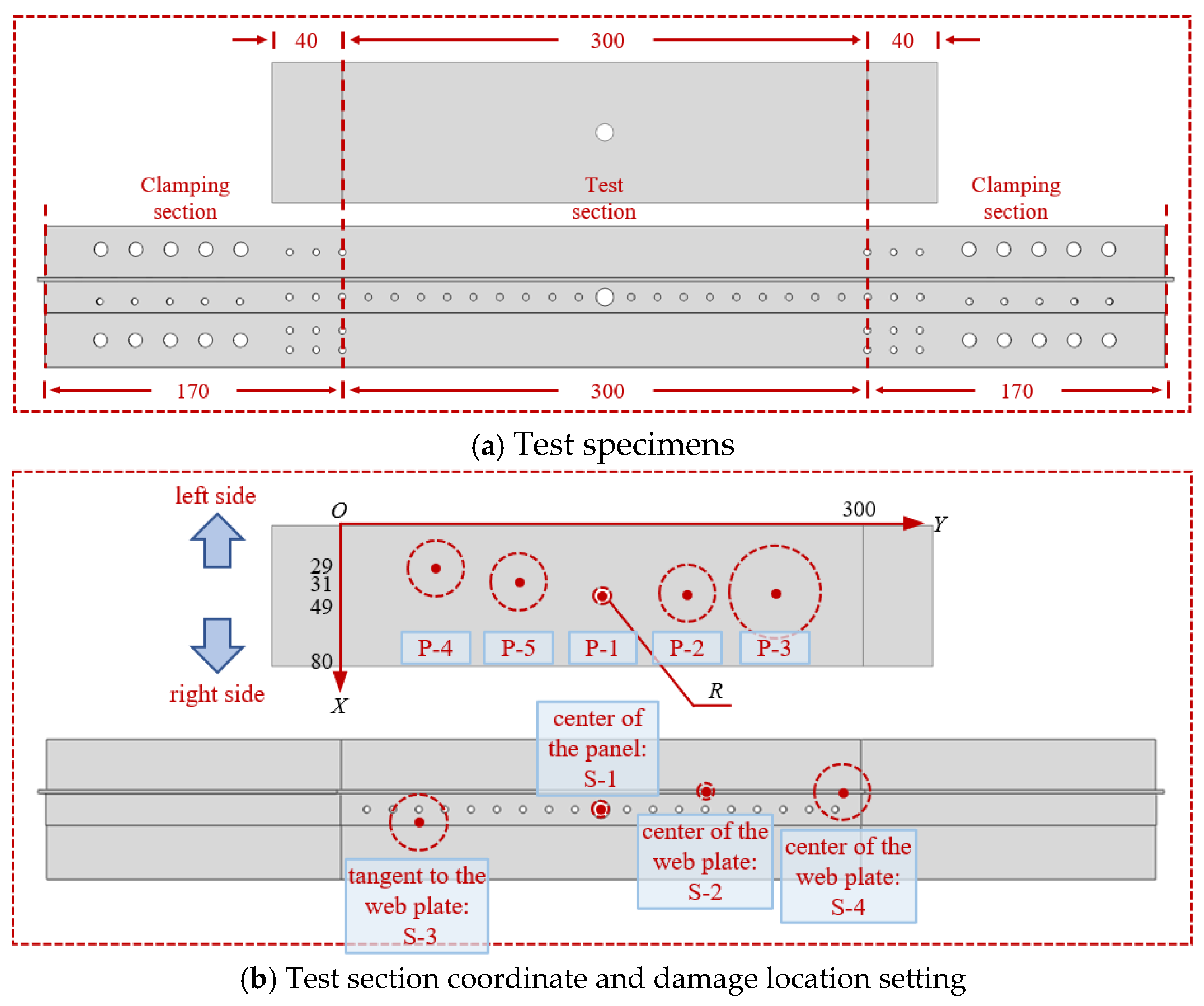| Test Specimen Numbering | Panel Types | Perforation Radius R/mm | Perforation Center Offset X/mm | Damage Location |