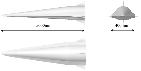The aerodynamic design of the Mars-16B has not yet been publicly disclosed. Currently, only top, bottom, and side views are available, which provide insufficient information about its overall structure. Based on online sources and public literature, the Mars-16B features a wave-riding body structure that takes advantage of the aerodynamic properties generated by shock wave attachment at the leading edge. This enables efficient flight, characterized by a high L/D ratio and minimal wave drag. This research employs accessible resources, including authentic photographs, videos, and model images, to determine the dimensions of the Mars-16B through reverse modeling and to accurately reproduce its external shape. The specific data is shown in Table 1. Figure 3 displays the model image.