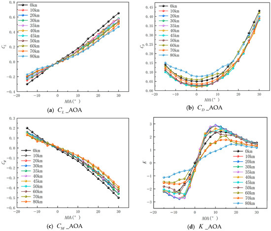 Here, denotes the angle of attack, represents the lift coefficient, and is the drag coefficient. This formula depicts an aerodynamic coefficient fitting equation derived for hypersonic flight conditions, capturing the nonlinear aerodynamic characteristics of hypersonic gliders. While typically increases with , nonlinear effects become pronounced at hypersonic speeds, warranting a quadratic representation. The term −0.041065 indicates a small negative lift that persists at = 0, while 0.01629 indicates the linear sensitivity of lift to , and 0.0002602 accounts for nonlinear lift effects. In the expression, the value 0.080505 represents the zero lift–drag coefficient, 0.86495 denotes the induced drag coefficient (which is proportional to the square of lift), and −0.03026 accounts for lift–drag coupling effects.