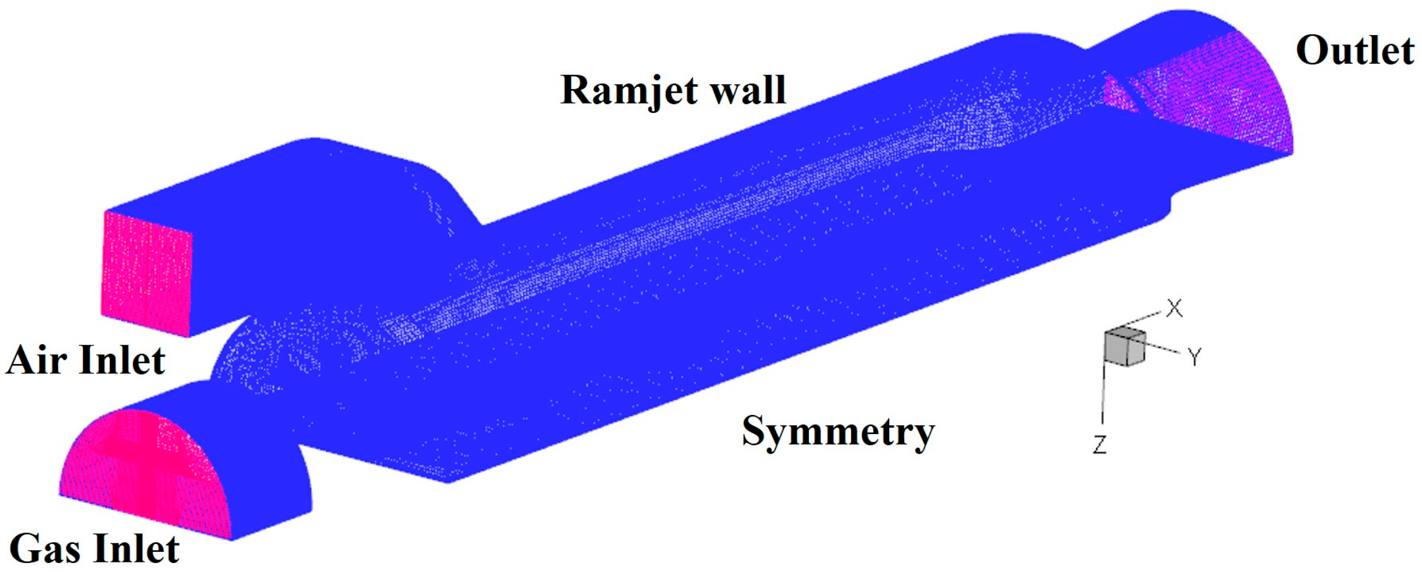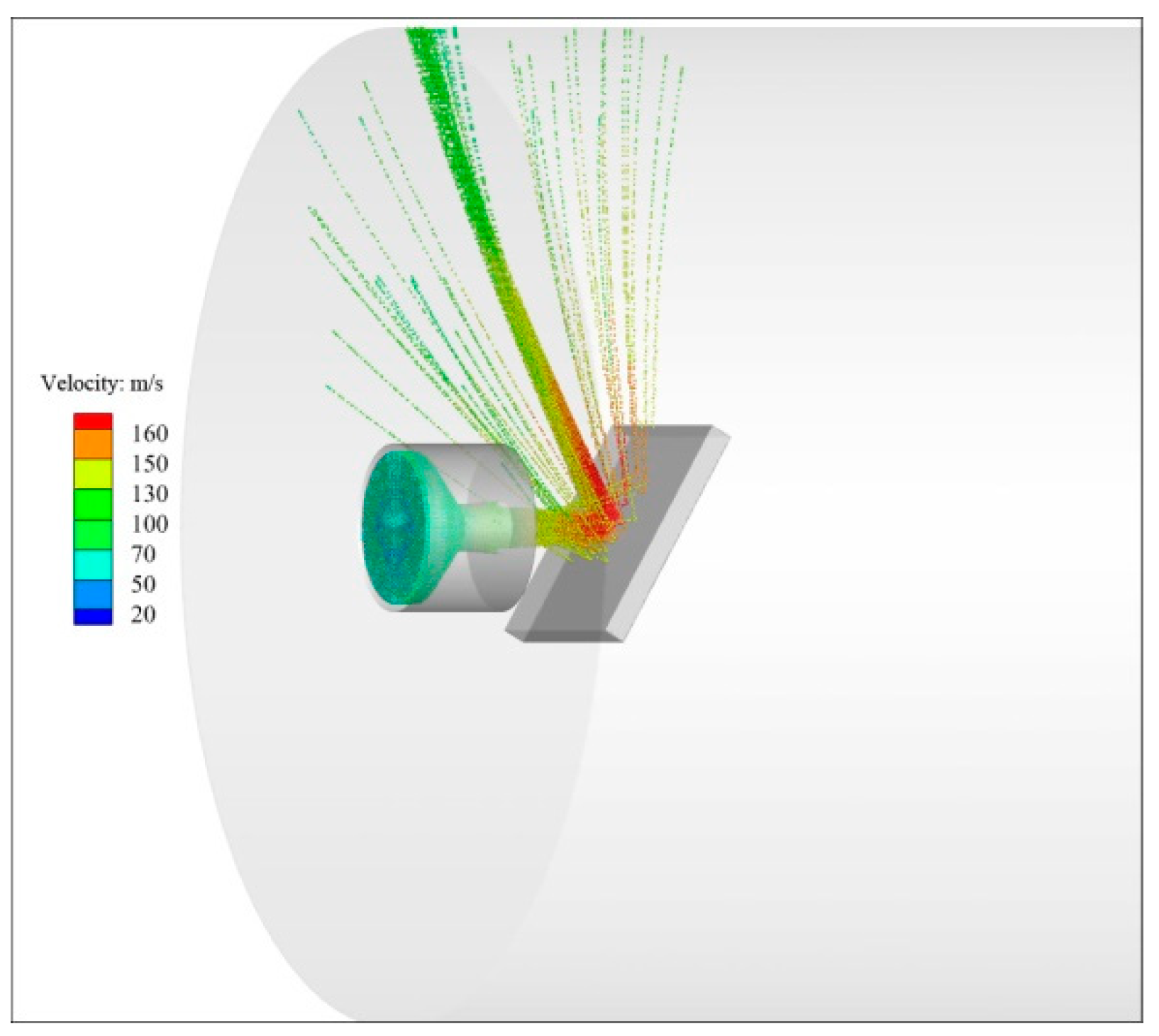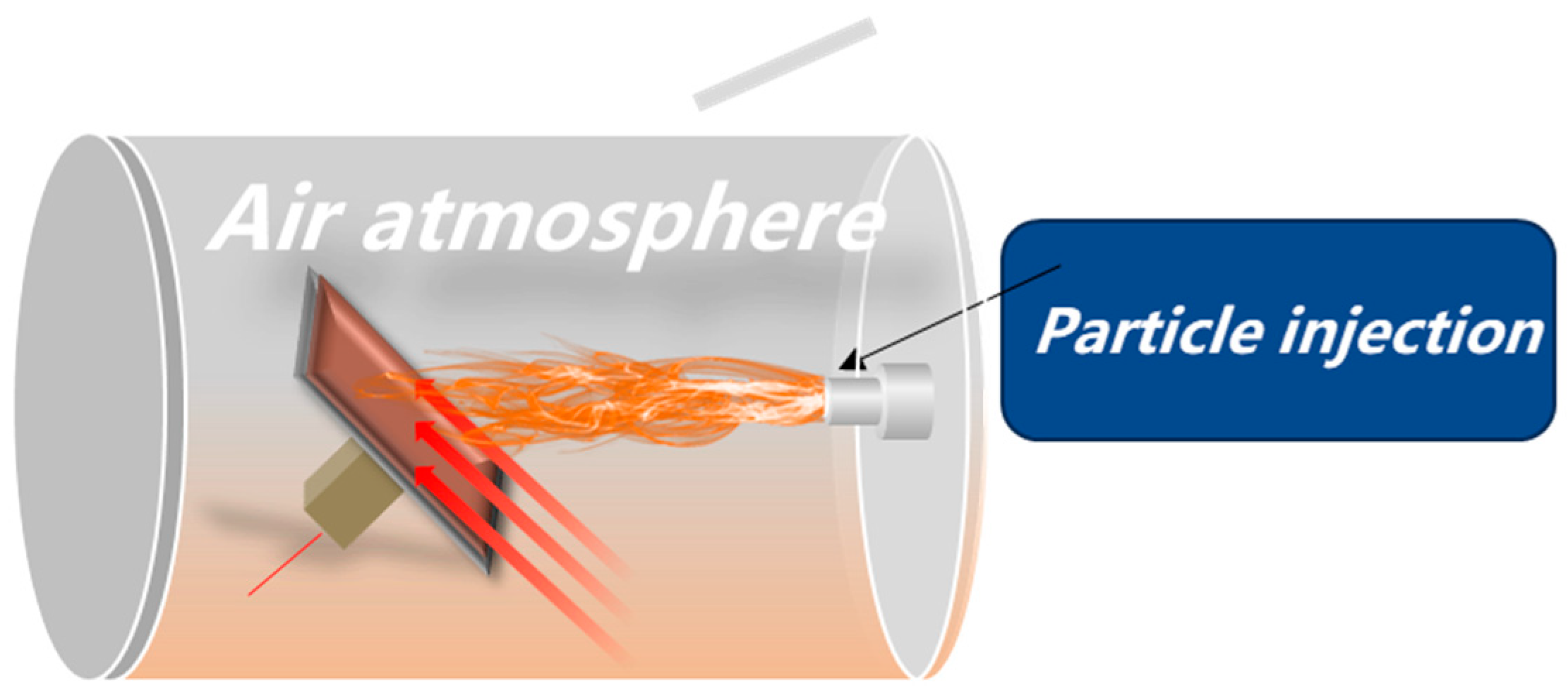 2 mass fraction of 17 ± 1% in the test stream; chamber pressure of 130 ± 5 kPa; alumina particle (mean diameter: 70 μm) mass flow rate of 2.0 ± 0.1 g/s; and test duration fixed at 180 s. These conditions were selected to replicate the severe environment identified in Region 4 of the SFRJ chamber simulation (