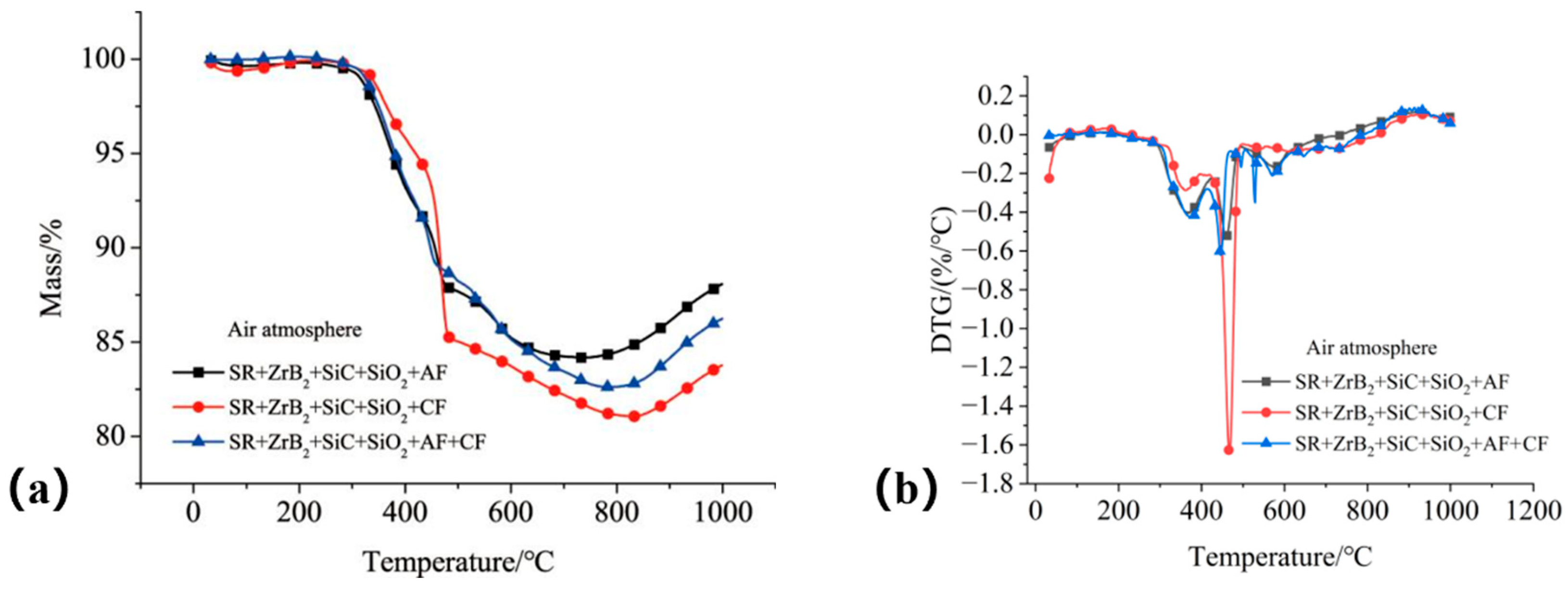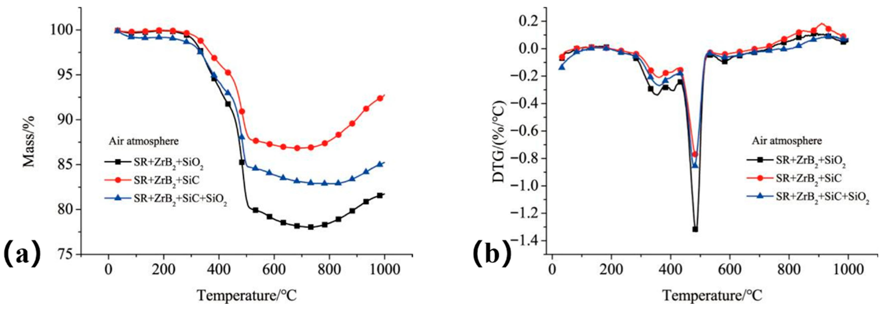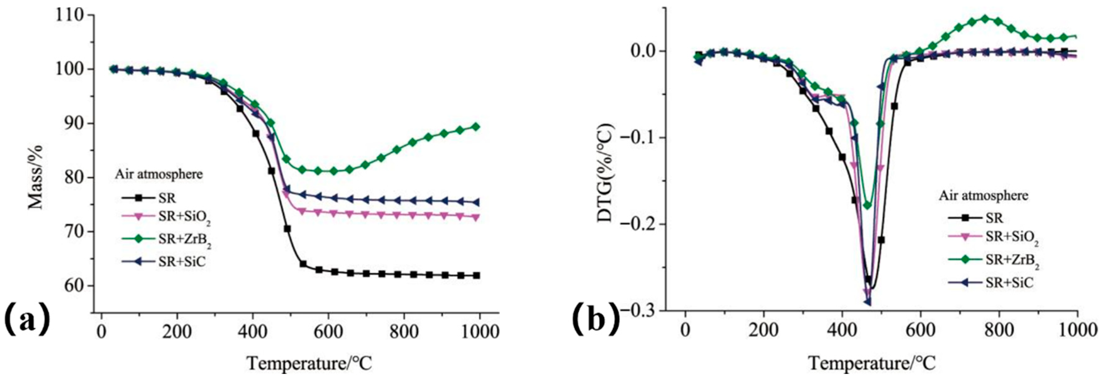 Thus, combining SiC and ZrB2 can provide effective ablation resistance across a broad temperature range. Additionally, silica (SiO2) fillers contribute to mechanical reinforcement. This section examines the synergistic effects of SiC, ZrB2, and SiO2 fillers.