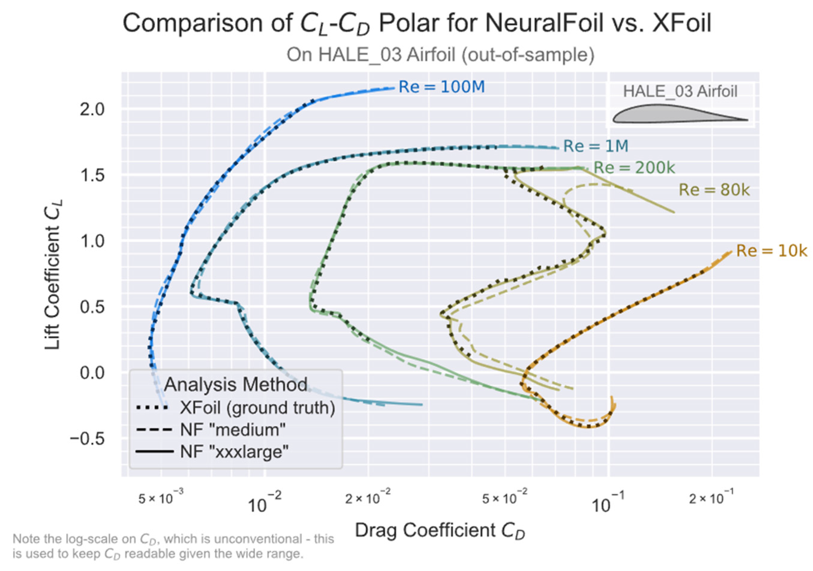 Comparison of different model sizes of NeuralFoil with XFOIL [