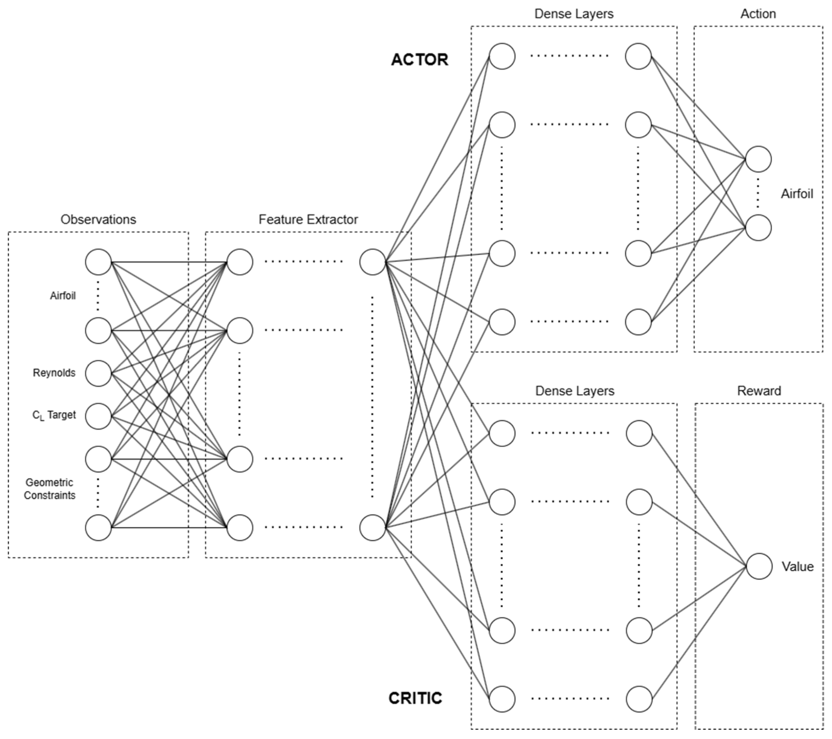 Diagram of the DRLFoil PPO network.