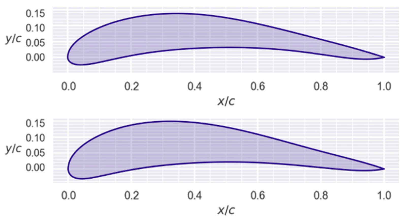 Comparison of two profiles at different Reynolds: (top), 100,000; (bottom), forty million.